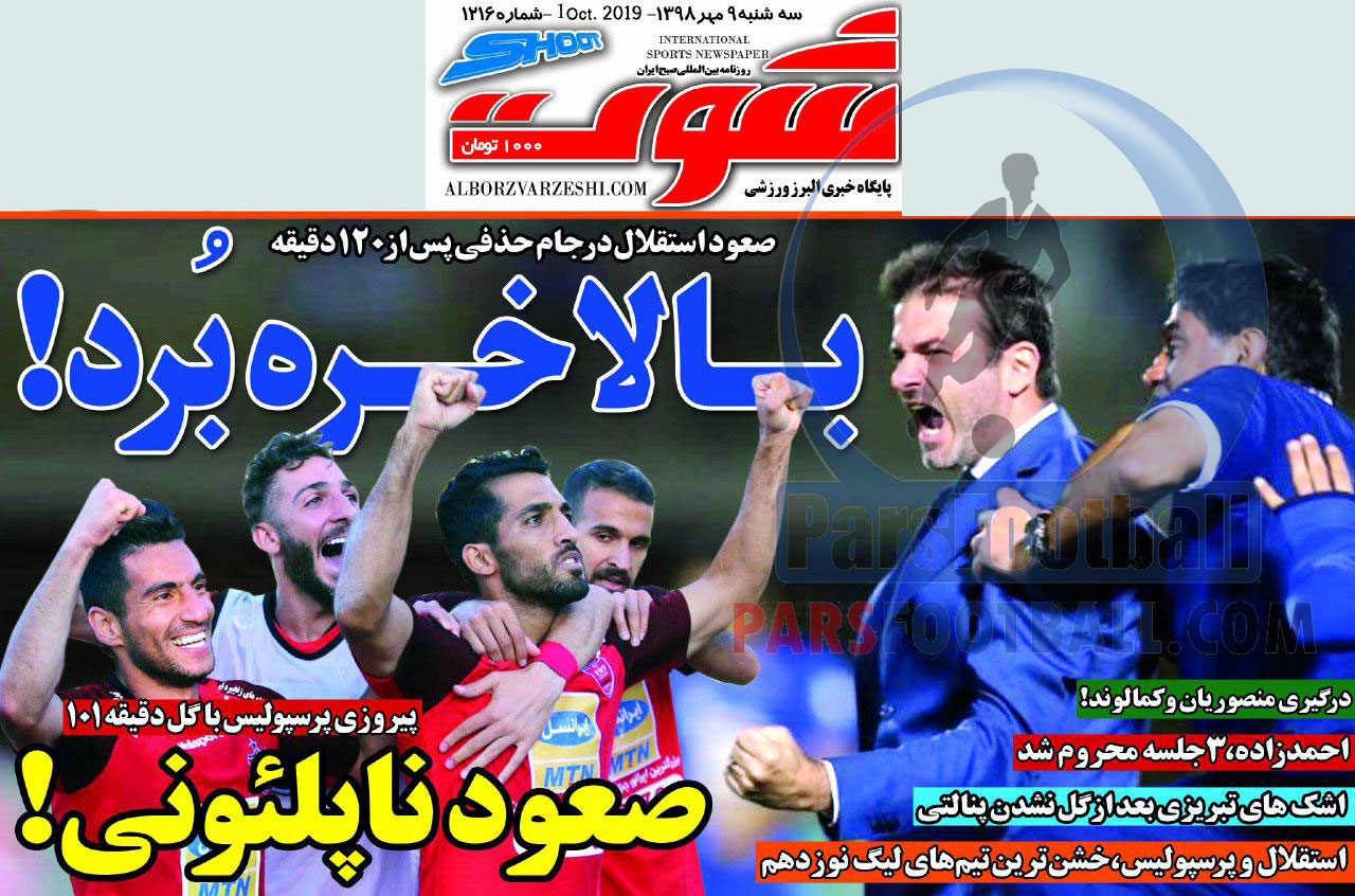 عناوین روزنامه شوت سه شنبه ۹ مهر ماه به شرح زیر است :