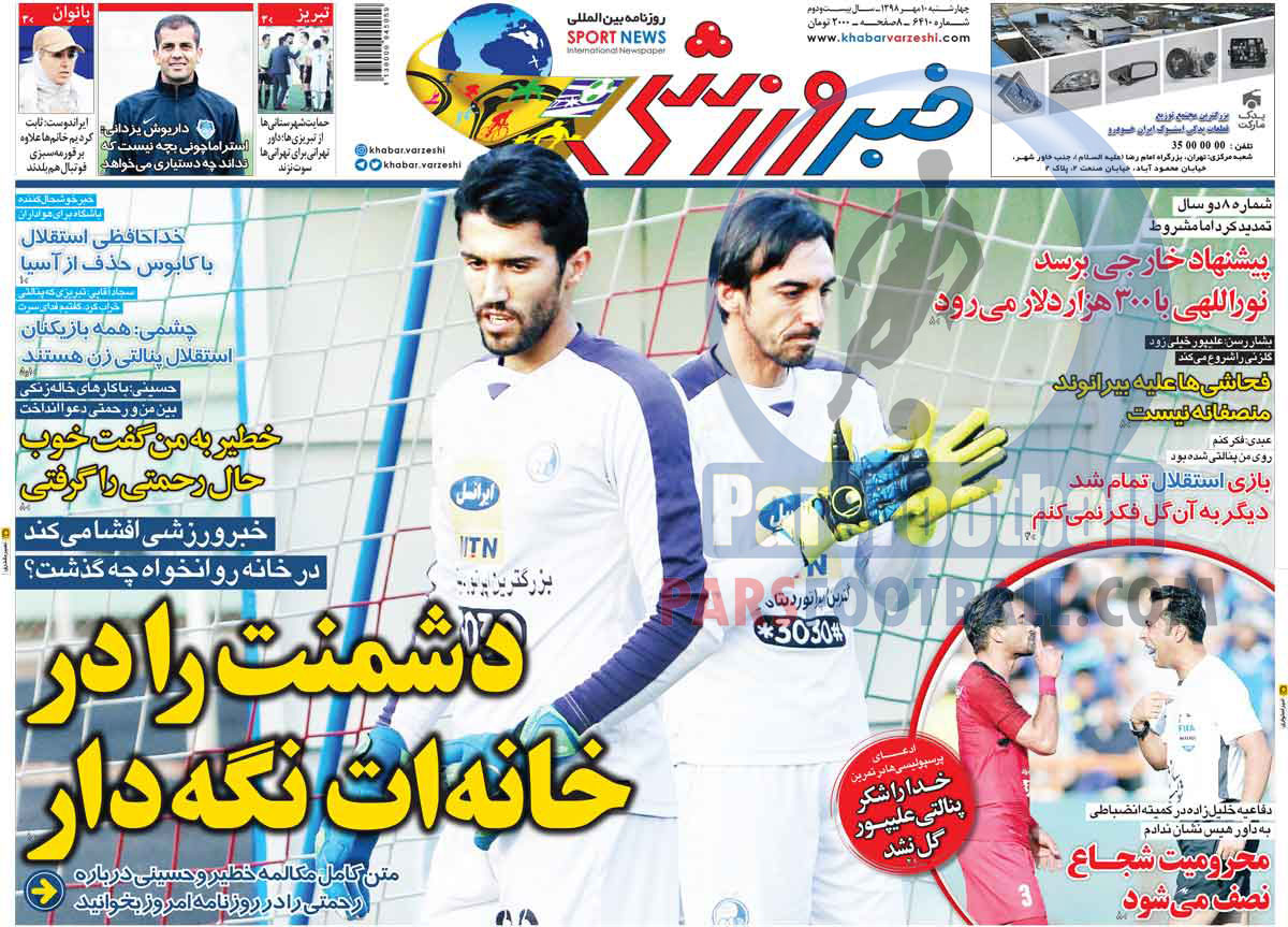عناوین روزنامه خبر ورزشی چهارشنبه ۱۰ مهر ماه به شرح زیر است :