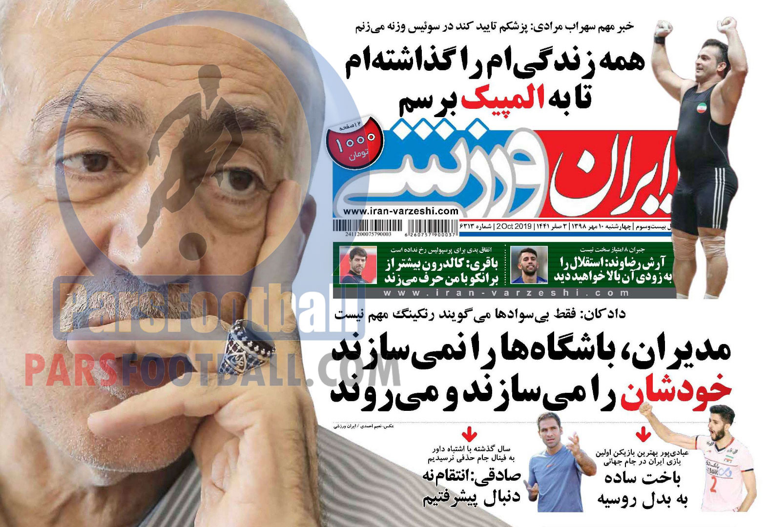 عناوین روزنامه ایران ورزشی چهارشنبه ۱۰ مهر ماه به شرح زیر است :