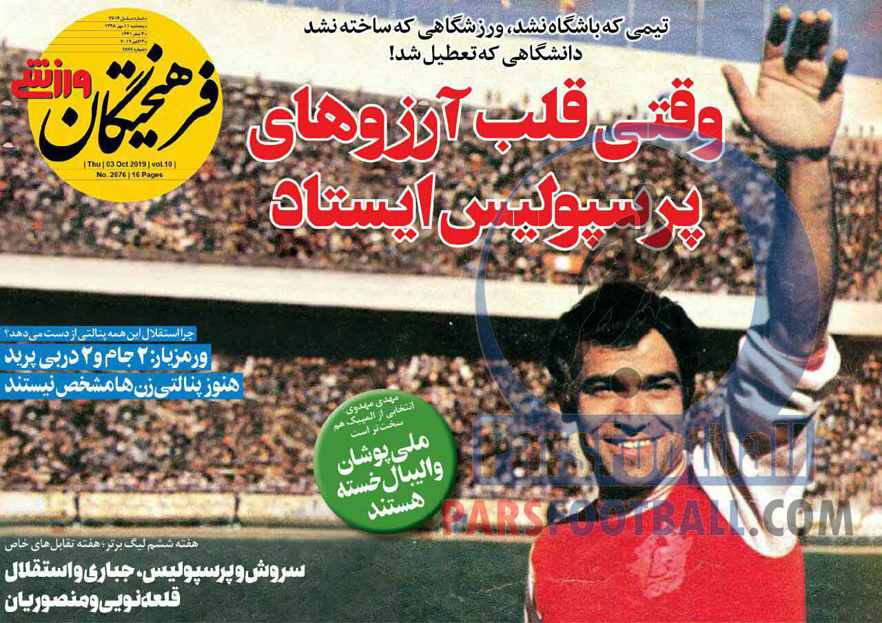 عناوین روزنامه فرهیختگان ورزشی پنجشنبه ۱۱ مهر ماه به شرح زیر است :