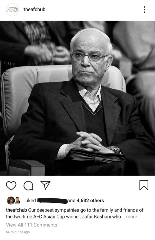 کنفدراسیون فوتبال آسیا به مناسبت درگذشت جعفر کاشانی پیام تسلیتی را منتشر کرد.