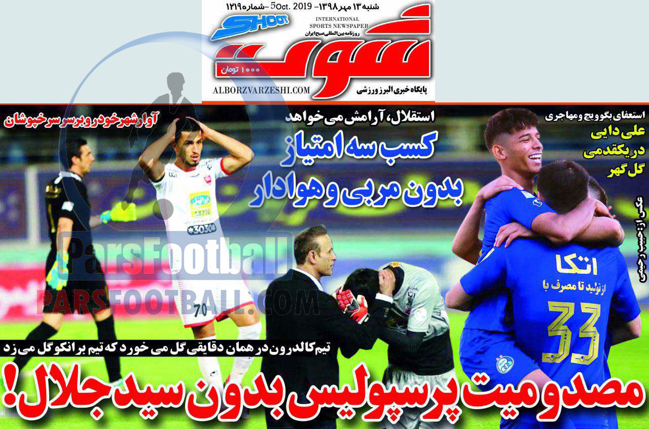 عناوین روزنامه شوت شنبه ۱۳ مهر ماه به شرح زیر است :