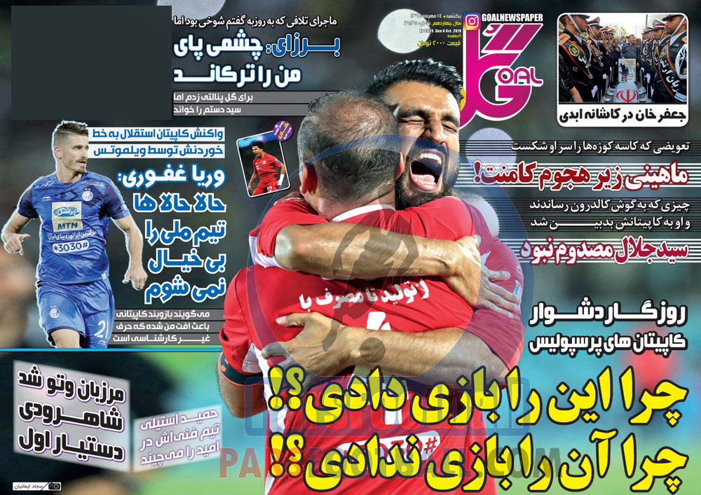 عناوین روزنامه گل یکشنبه ۱۴ مهر ماه به شرح زیر است :