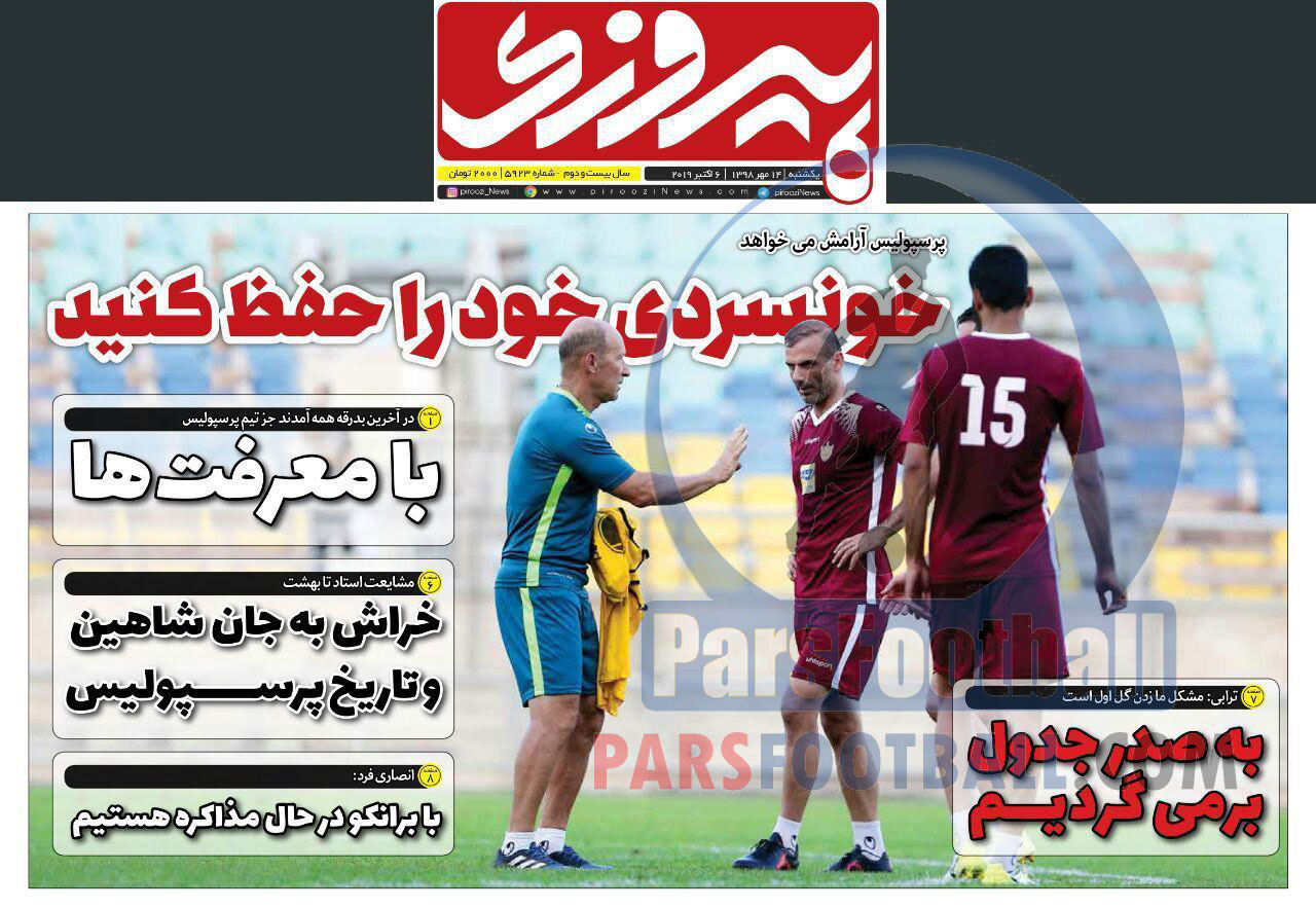 گیشه اخبار داخلی پارس فوتبال همه روزه به بررسی نشریات ورزشی می پردازد. به بررسی روزنامه پیروزی می پردازیم.