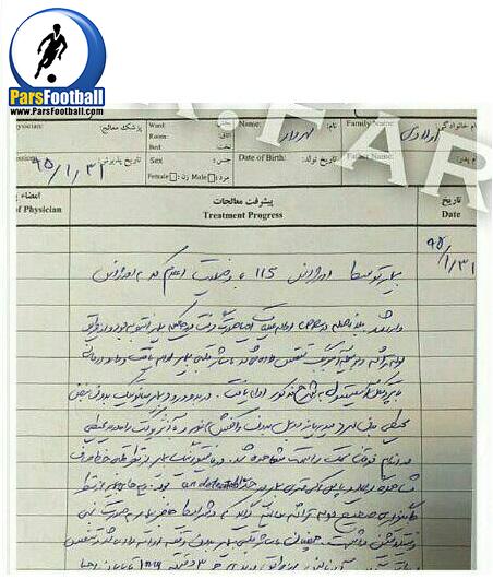 عکس | گزارش پزشک اورژانس بیمارستان تجریش درمورد ستاره سابق پرسپولیس