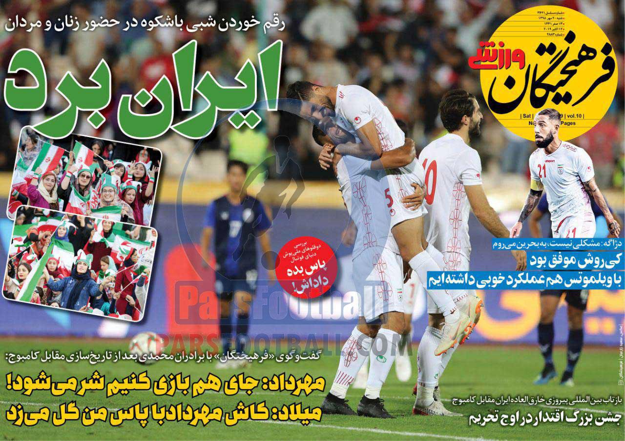 عناوین روزنامه فرهیختگان ورزشی شنبه ۲۰ مهر ماه به شرح زیر است :