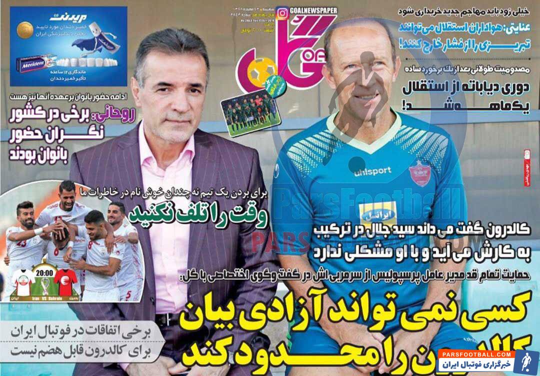 عناوین روزنامه گل سه شنبه ۲۳ مهر ماه به شرح زیر است :