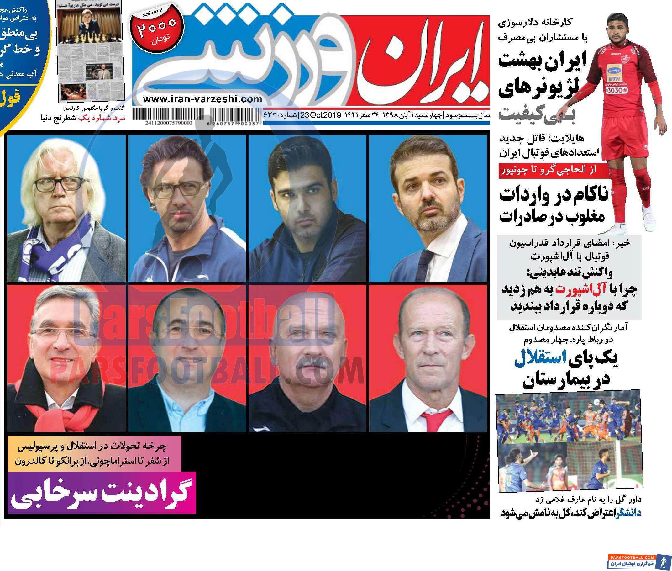 مرور عناوین مهم روزنامه ایران ورزشی چهارشنبه 1 آبان