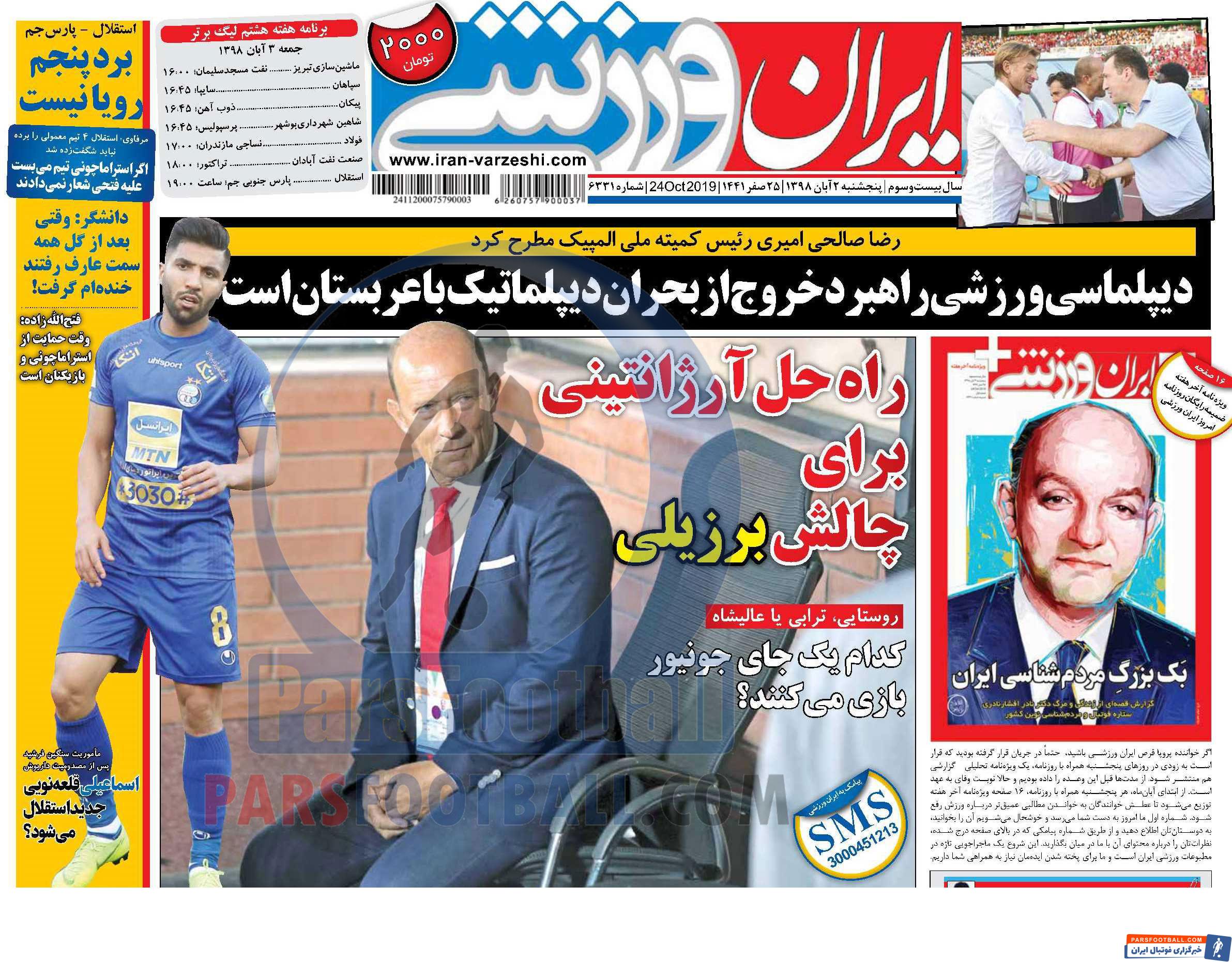 مرور عناوین مهم روزنامه ایران ورزشی پنجشنبه 2 آبان