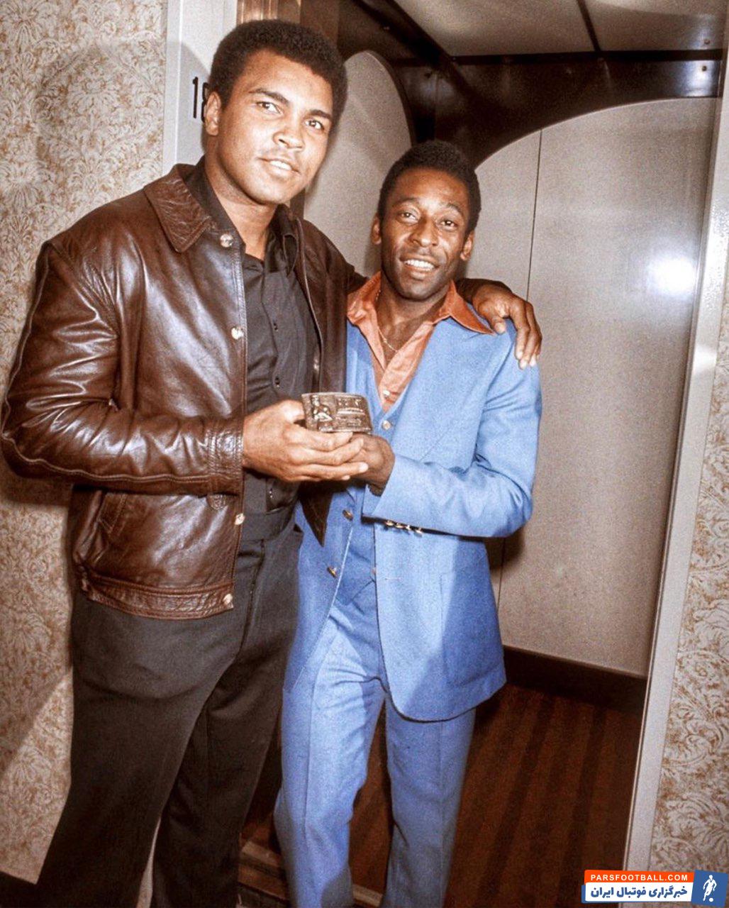 تصویری از دو اسطوره ی دنیای ورزش، پله و بوکسر آمریکایی محمد علی کلی در فضای مجازی منتشر شده است .