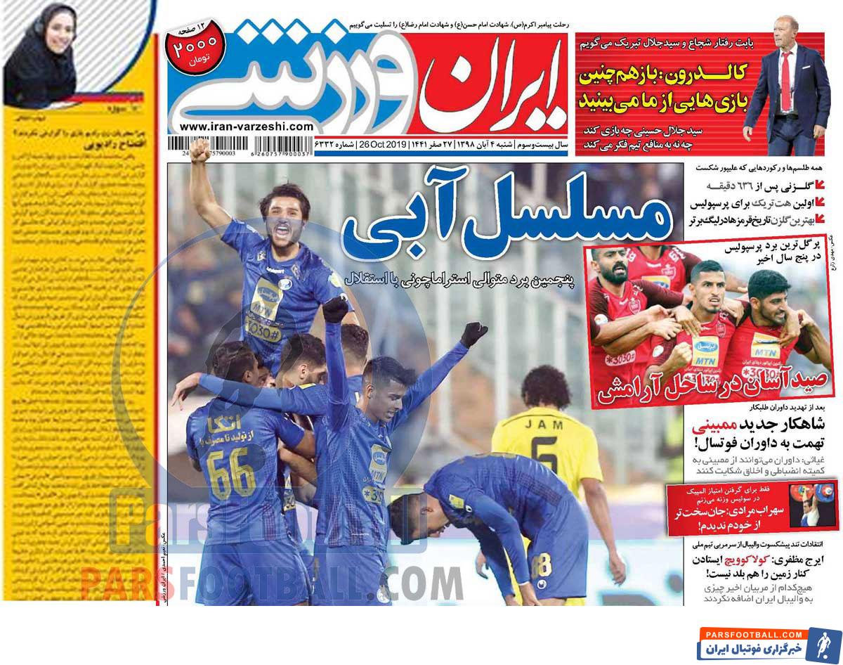 عناوین روزنامه ایران ورزشی شنبه ۴ آبان ماه به شرح زیر است :