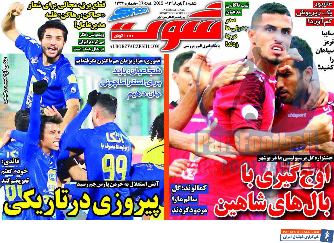 عناوین روزنامه شوت شنبه ۴ آبان ماه به شرح زیر است :