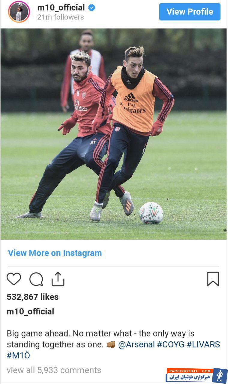 اوزیل اما ترجیح داده که به جای ادامه حواشی به اتحاد و همبستگی تیمش کمک کند. او با قرار دادن پستی در صفحه اینستاگرام خود خواستار اتحاد بیشتر در آرسنال شده است. اوزیل در این پست نوشته است: