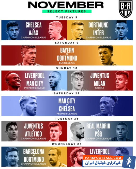 با آمدن ماه نوامبر اروپا شاهد دیدارهای حساس فوتبال باشگاهی در این ماه خواهد بود.