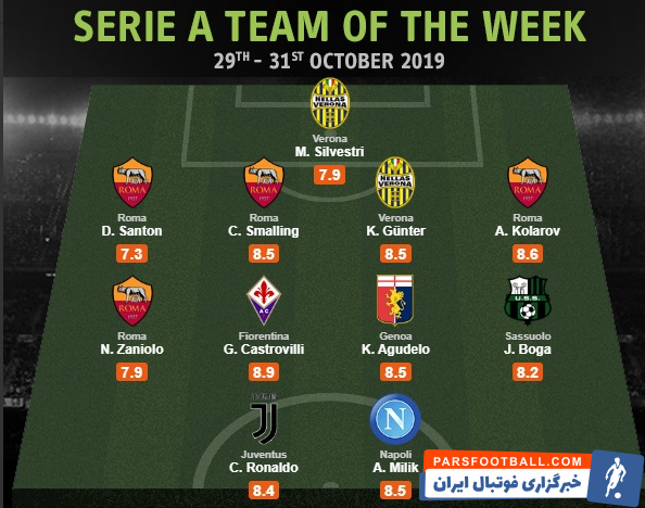 هواسکورد تیم منتخب هفته سری آ ایتالیا را معرفی کرد که بر این اساس کریس رونالدو در نوک حمله حضور دارد.