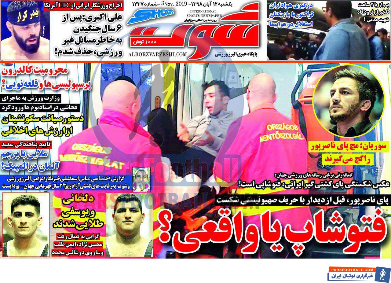عناوین روزنامه شوت یکشنبه ۱۲ آبان ماه به شرح زیر است :