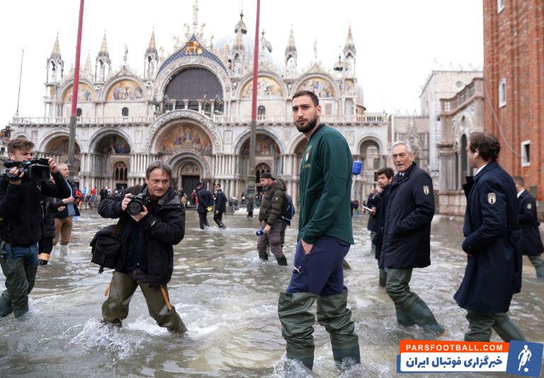 جان لوئیجی دوناروما دروازهبان تیم ملی ایتالیا و باشگاه میلان در شهر سیل زده ونیز حضور یافت.
