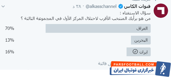 شبکه «الکاس» قطر یک نظرسنجی به راه انداخت و از کاربرانش پرسید که کدام تیم ملی در گروه سوم مسابقات انتخابی جام جهانی ۲۰۲۲ قطر صدرنشین به مرحله بعد صعود می کند.