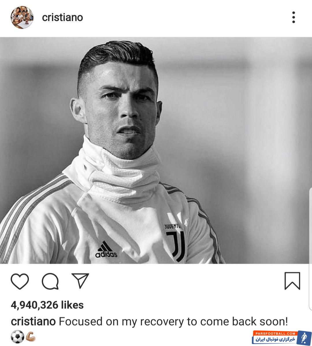 کریستیانو رونالدو با انتشار پستی در صفحه اینستاگرام خود عنوان کرد که در حال ریکاوری برای بازگشت سریع تر به میادین است.