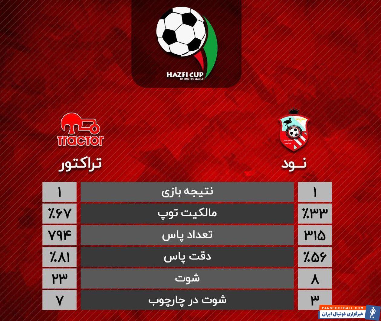 گفتنی است؛ شاگردان دنیزلی در بازی دیروز ۲۳ شوت و بازیکنان نود ۸ شوت زدند که ۷ شوت تراکتوریها و ۳ شوت حریف داخل چارچوب بود.