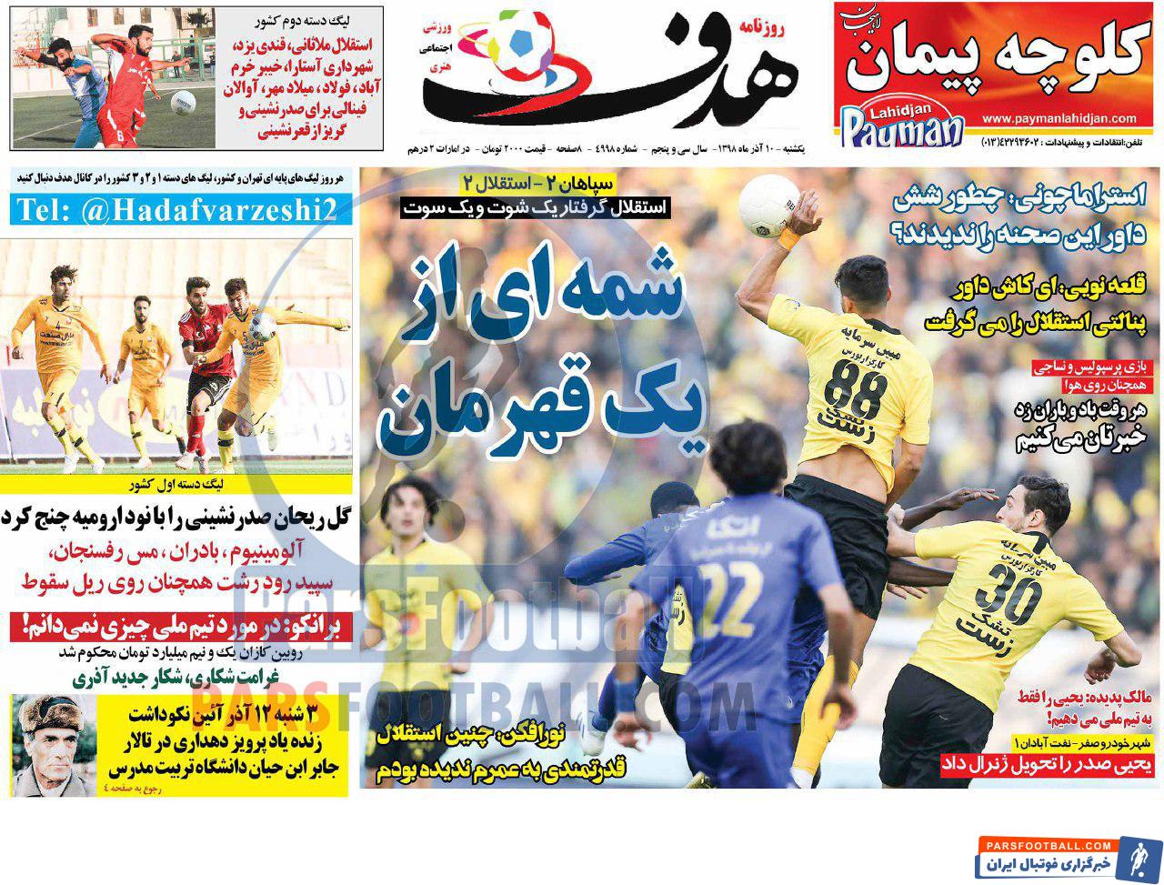 گیشه اخبار داخلی پارس فوتبال همه روزه به بررسی نشریات ورزشی می پردازد. به بررسی روزنامه هدف می پردازیم.