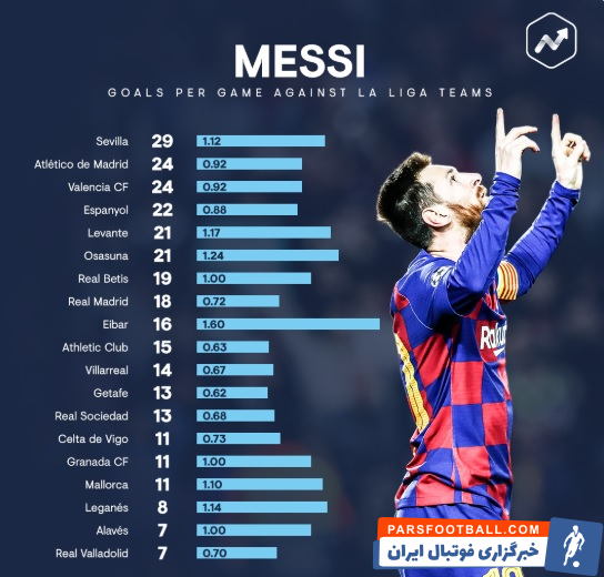 مسی ؛ فهرست بیشترین گل های مسی به تیم های لالیگایی ؛ خبرگزاری پارس فوتبال