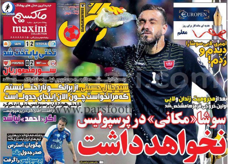 روزنامه گل ۱۱ اردیبهشت | سوشا <> در پرسپولیس نخواهد داشت | امیری : لایی سوشا را دیدم و زدم