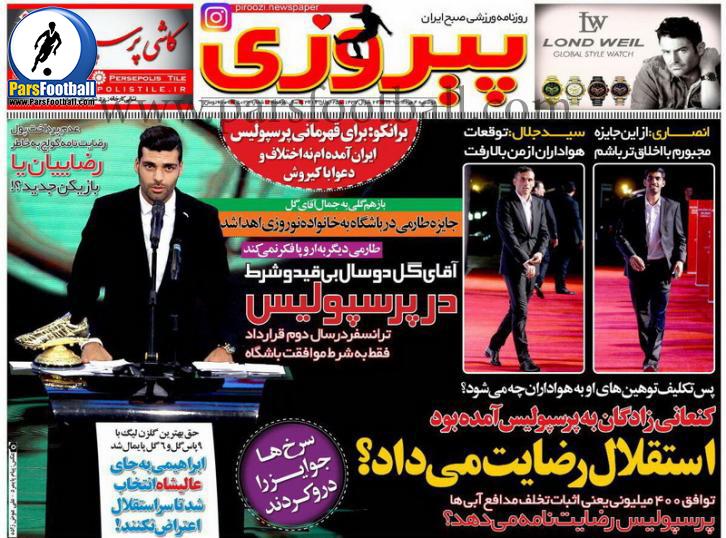 روزنامه پیروزی ۴ مرداد | استقلال رضایت می داد ؟ | آقای گل دوسال بی قید و شرط در پرسپولیس