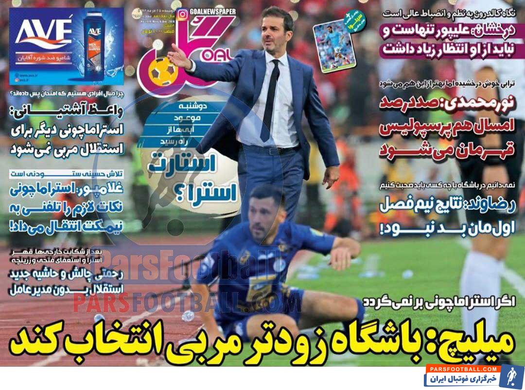برای دیدن دیگر روزنامه های ورزشی دوشنبه ۲۵ آذر ماه به اینجا مراجعه کنید!