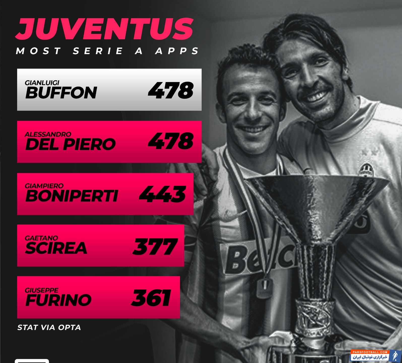 رکورد 478 بازی بوفون با پیراهن یوونتوس