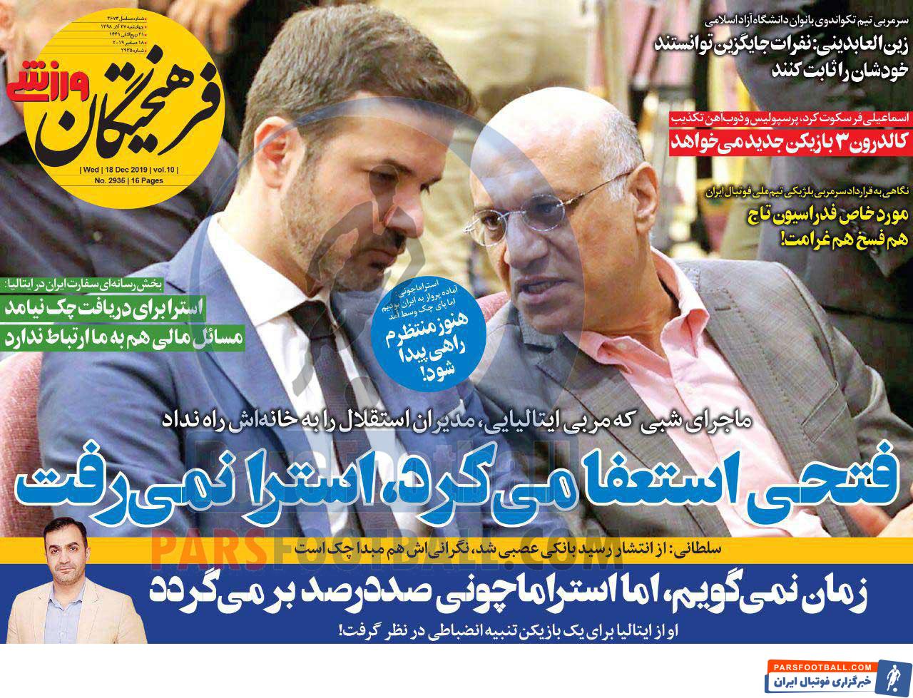 عناوین روزنامه فرهیختگان ورزشی چهارشنبه ۲۷ آذر ماه به شرح زیر است :
