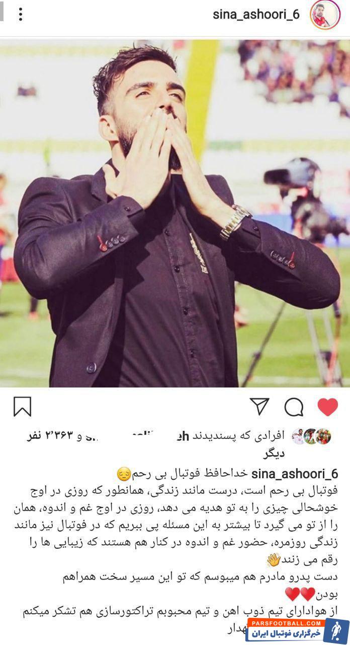 این اتفاقات دست به دست هم داد تا این هافبک سابق تیم های ملی پایه ایران، در سن ۳۱ سالگی از فوتبال خداحافظی کند. سینا عشوری خبر خداحافظی خود را در صفحه اینستاگرام شخصی اش منتشر کرد.