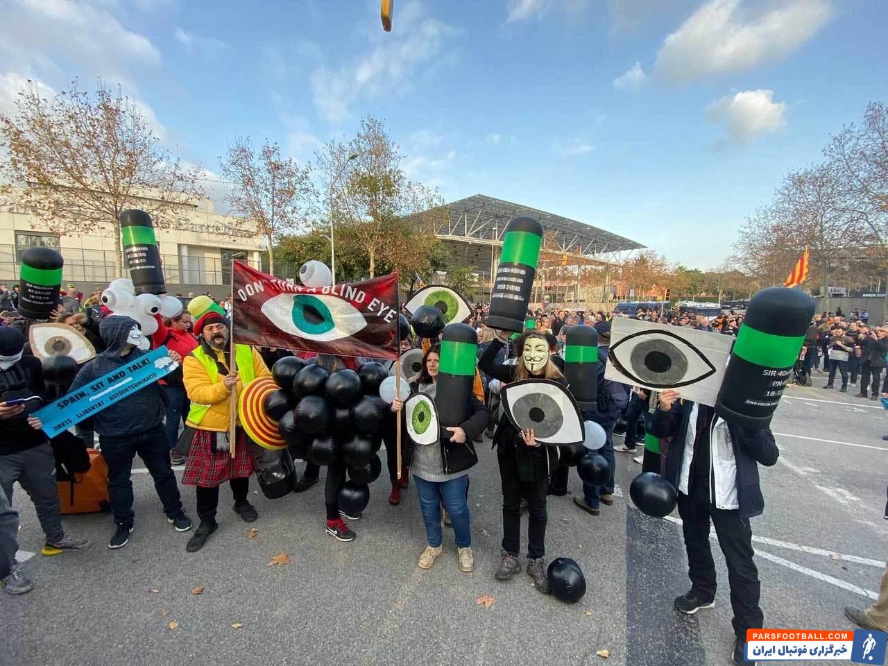همانطور که پیش بینی می شد دیدار حساس بین بارسلونا و رئال مادرید که قرار است امشب در استادیوم نوکمپ برگزار شود، رنگ و بویی سیاسی خواهد داشت و معترضان از حدود سه ساعت مانده به آغاز این دیدار حساس، در خیابان های اطراف استادیوم نوکمپ اعتراضات خود را آغاز کرده اند.