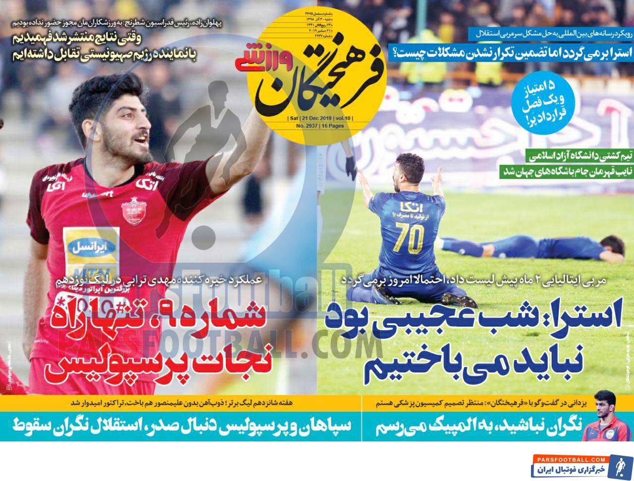 عناوین روزنامه فرهیختگان ورزشی شنبه ۳۰ آذر ماه به شرح زیر است :
