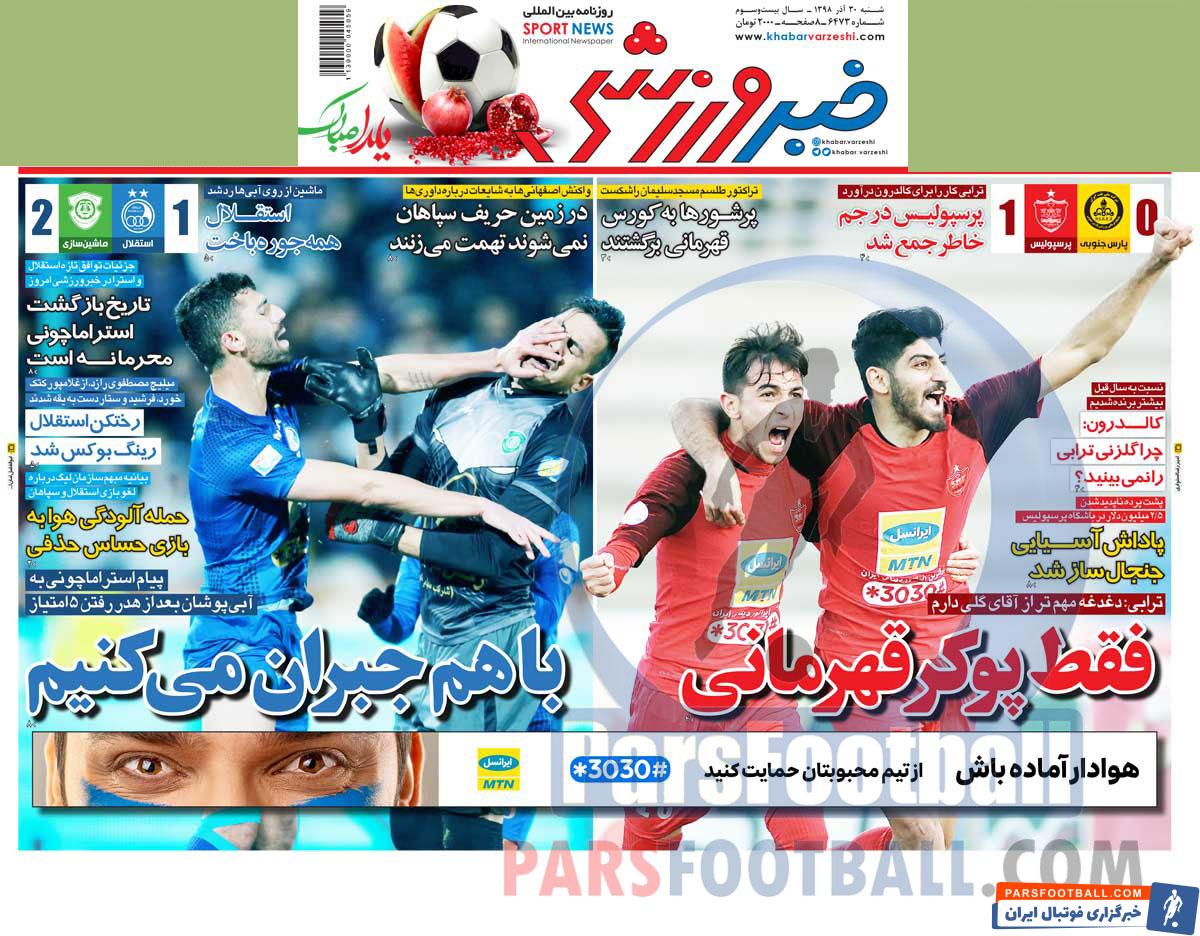 عناوین روزنامه خبر ورزشی شنبه ۳۰ آذر ماه به شرح زیر است :