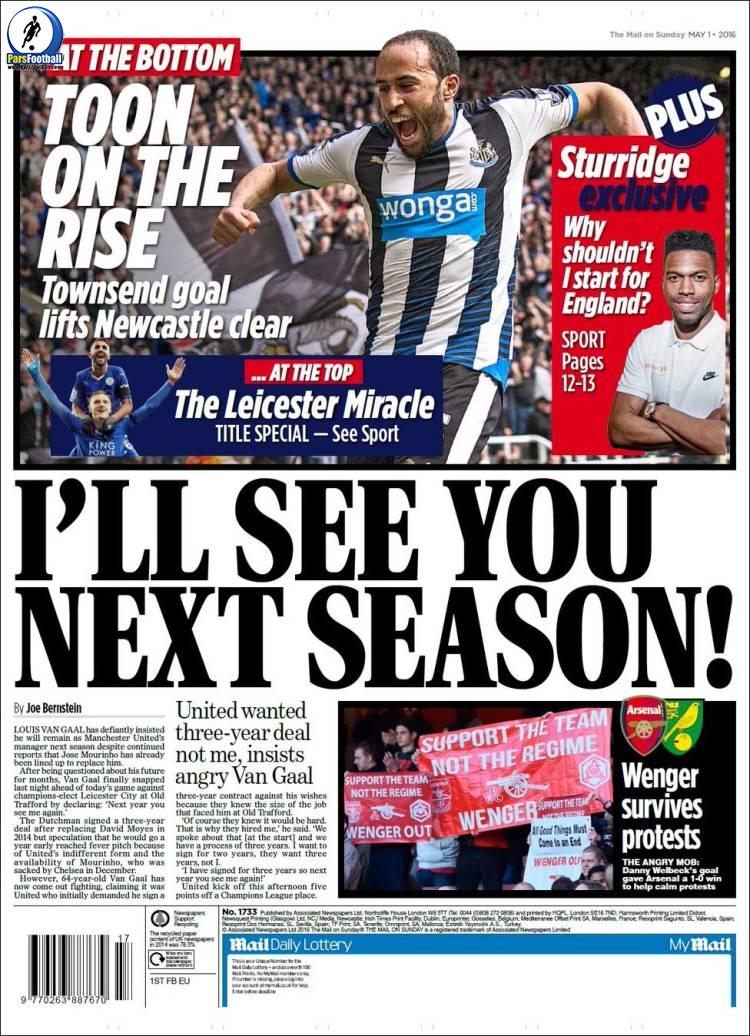 عناوین روزنامه دیلی میل اسپورت بریتانیا ۱۶ خرداد ۹۵