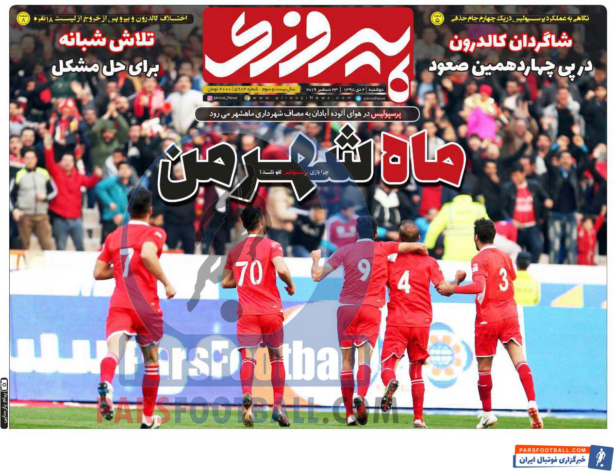 گیشه اخبار داخلی پارس فوتبال همه روزه به بررسی نشریات ورزشی می پردازد. به بررسی روزنامه پیروزی می پردازیم.