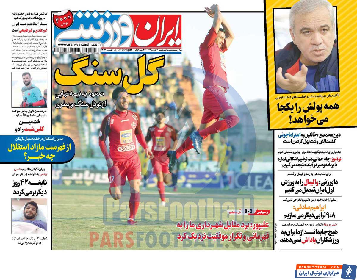 عناوین روزنامه ایران ورزشی سه شنبه ۳ دی ماه به شرح زیر است :
