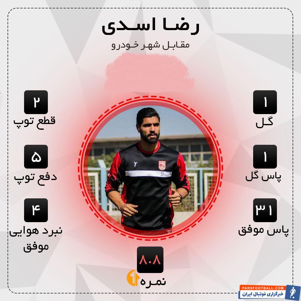 رضا اسدی هافبک دفاعی تراکتوریها توانست مرد اول تیمش برابر شهر خودرو باشد و نقش مهمی در سومین پیروزی متوالی تراکتور ایفا کند.