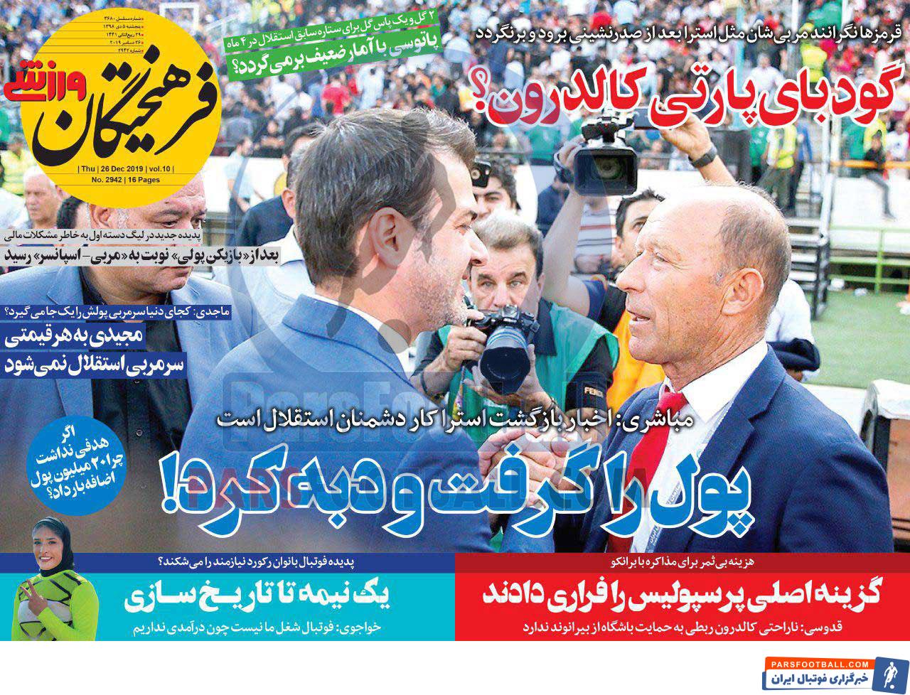 عناوین روزنامه فرهیختگان ورزشی پنجشنبه ۵ دی ماه به شرح زیر است :