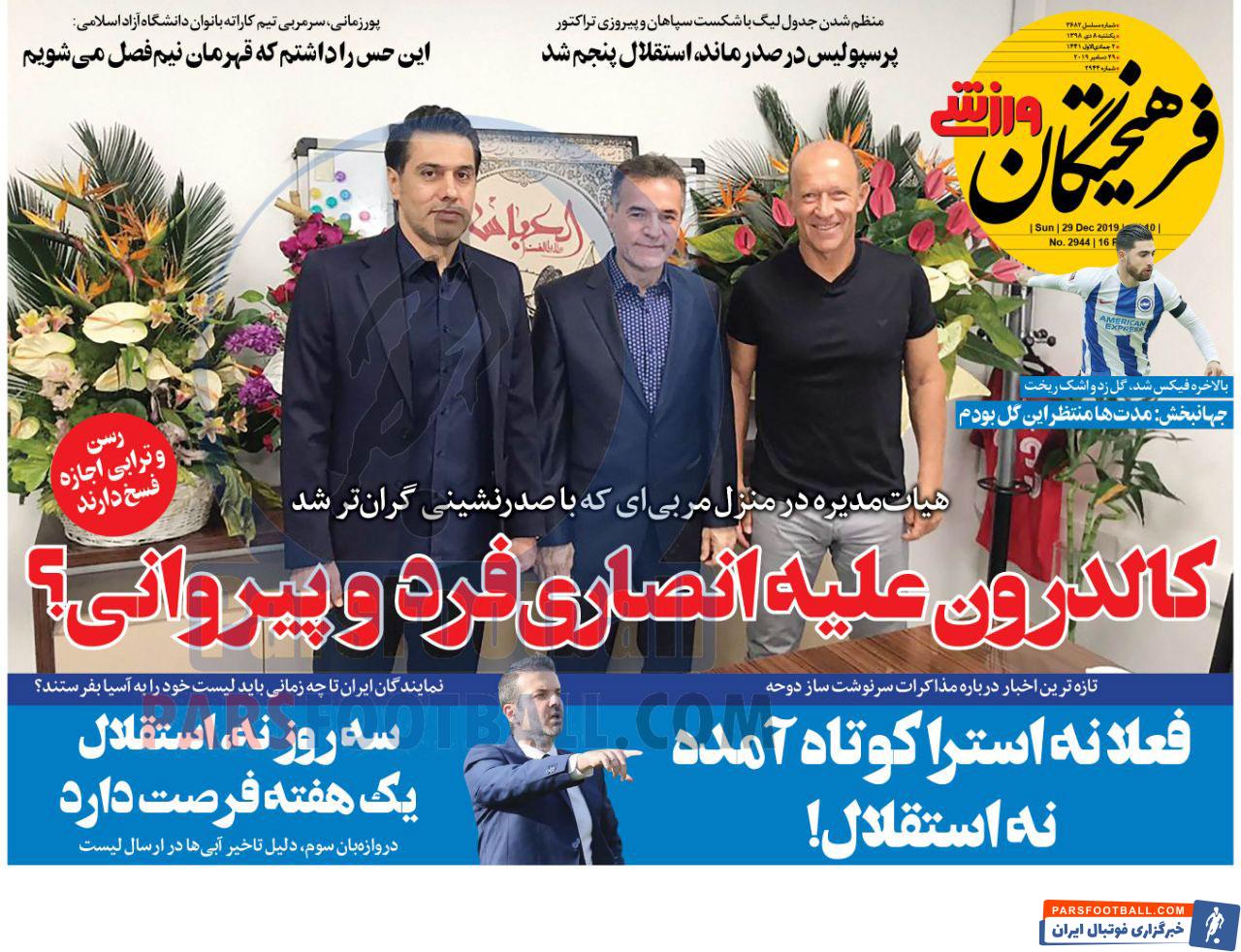 عناوین روزنامه فرهیختگان ورزشی یکشنبه ۸ دی ماه به شرح زیر است :