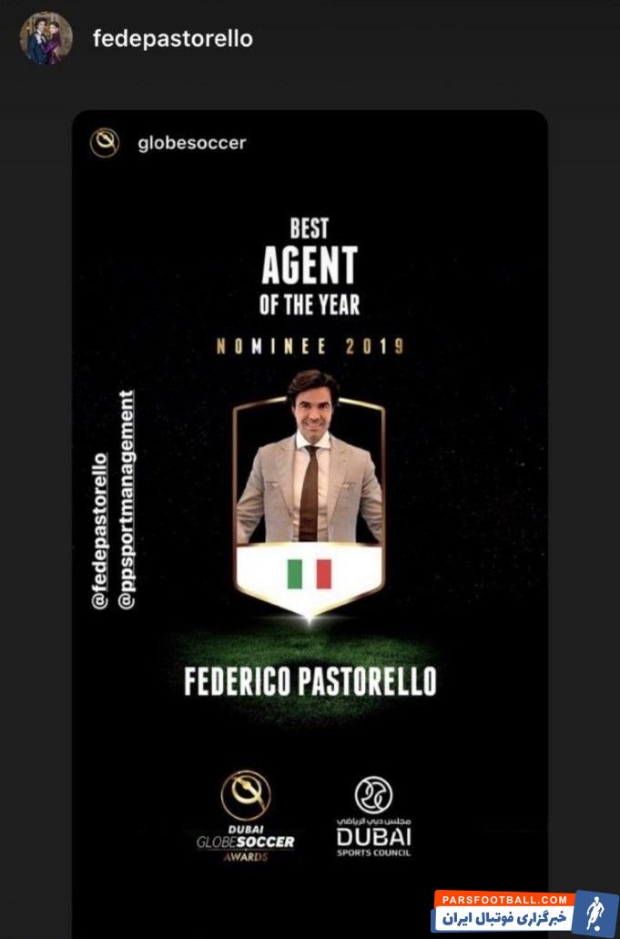فدریکو پاستورلو ، ایجنت مشهور و شناخته شده ایتالیایی از سوی جشنواره گلوبال ساکر، نامزد کسب عنوان بهترین ایجنت جهان شده است.