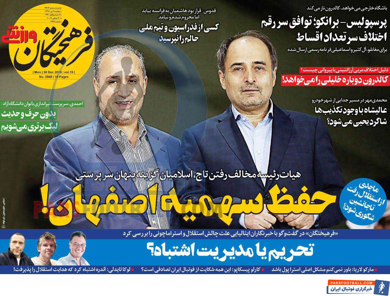 مرور عناوین مهم روزنامه فرهیختگان ورزشی دوشنبه 9 دی ماه