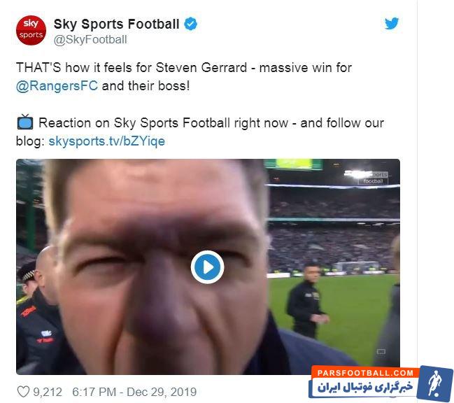 خوشحالی زایدالوصف و فریاد بلند استیون جرارد، سرمربی رنجرز، در مقابل دوربین بعد از پیروزی در دربی اسکاتلند مقابل دربی در این کشور خبرساز شده است.