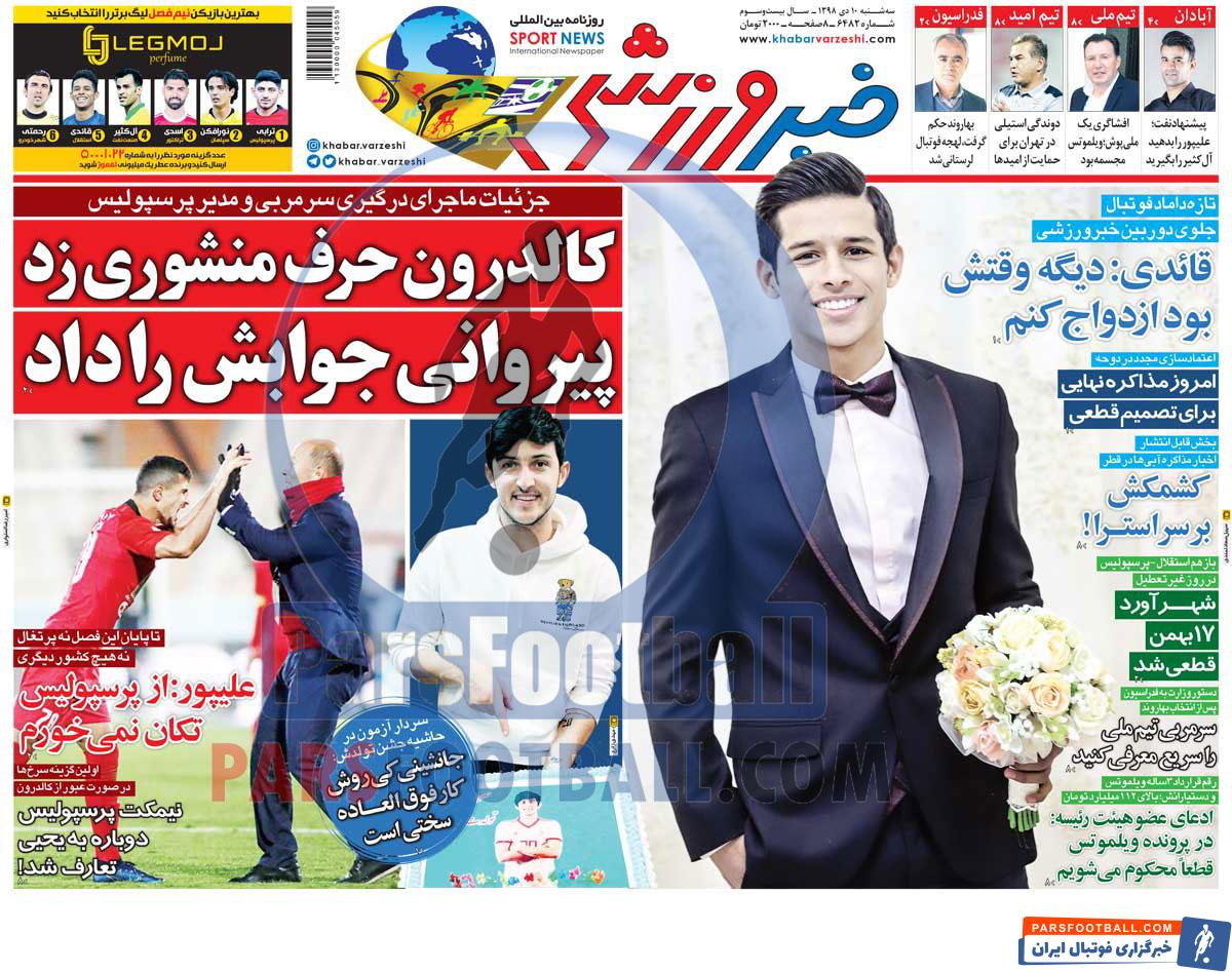 عناوین روزنامه خبر ورزشی سه شنبه ۱۰ دی ماه به شرح زیر است :