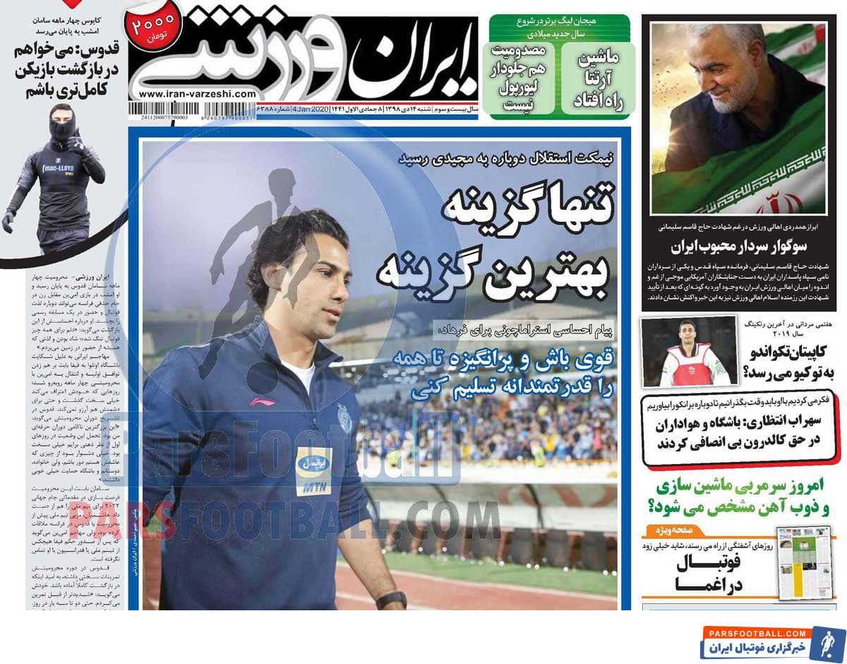 عناوین روزنامه ایران ورزشی شنبه ۱۴ دی ماه به شرح زیر است :