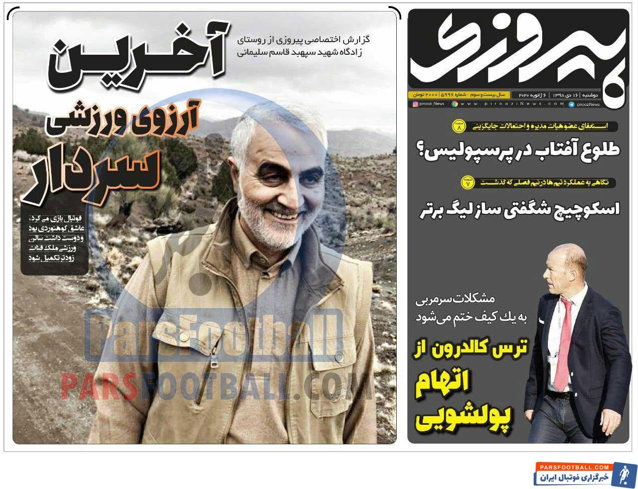 عناوین روزنامه پیروزی دوشنبه ۱۶ دی ماه به شرح زیر است :