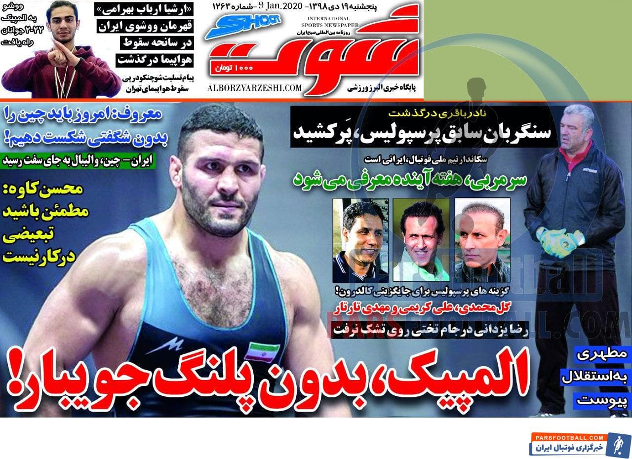 عناوین روزنامه شوت پنجشنبه ۱۹ دی ماه به شرح زیر است :