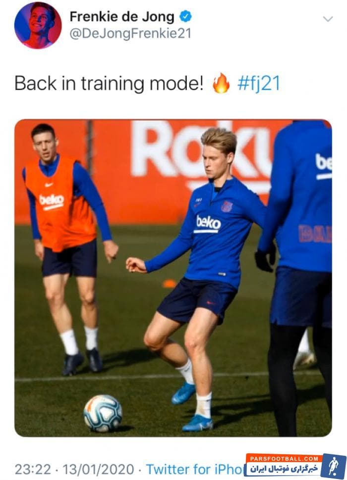 توئیت دیشب فرانکی دی یونگ، هافبک هلندی بارسلونا در شبکه های اجتماعی خبرساز شده است.