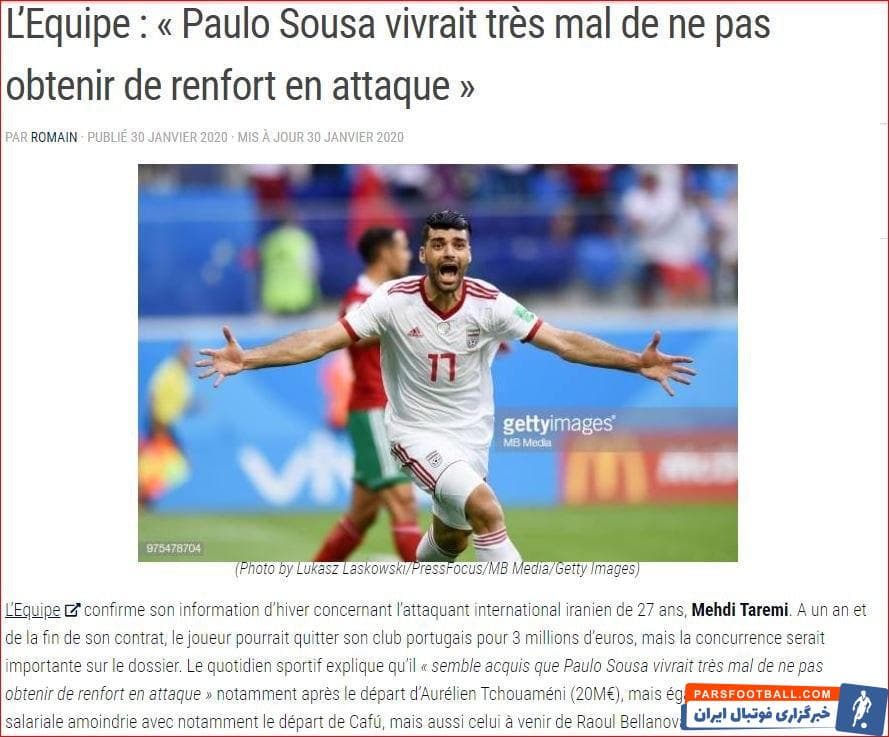 در شرایطی که رسانه های پرتغالی از درخواست ۵ میلیون یورویی ریوآوه برای فروش طارمی ستاره سابق پرسپولیس پرده برداشتند اما اکیپ فرانسه در گزارشی پیرامون شرایط خط حمله بوردو مدعی شد این باشگاه فرانسوی می تواند ستاره ۲۷ ساله ایرانی را با رقمی در حدود ۳ میلیون یورو به خدمت بگیرد تا لیگ یک فرانسه از این پس شاهد رقابت دو ستاره ایرانی باشد، سامان قدوس در آمیان و مهدی طارمی در بوردو.